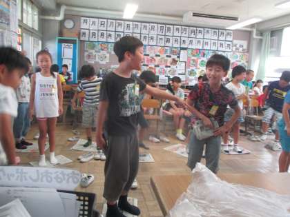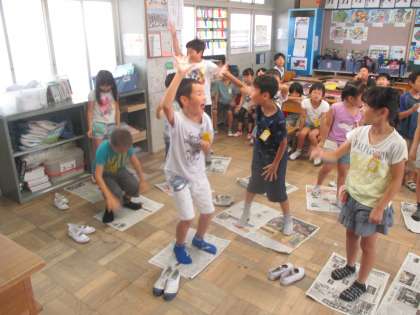 みんなで新聞ゲームもしました。自然と合図をとって,子どもたちだけで遊ぶことができました。
