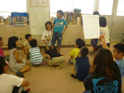 日直さんのスピーチを聞いて、質問しました。内容をよく聞いて質問することができていました。また、日直さんのスピーチも「いつ・どこで・なにを・どうした」などを意識して話すことができていました。