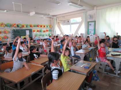 栄養教諭の先生が「野菜を食べると,どんないいことがあるかな?」という授業をしてくださいました。はてなボックスを使ったり,テレビを使ったりして,わかりやすく楽しい授業に,子どもたちも大喜びでした!