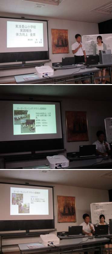 各校の取組として、本校は、体力向上、食育の取組について、実践を通した成果と課題をまとめて報告しました。