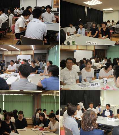 その後、3校の教職員がグループに分かれて、テーマに基づいた意見交流等を行い、研修が深まりました。