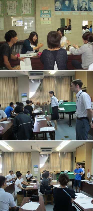指導主事と英語教育コーディネータに講師としてきていただき、外国語活動の研修に取り組みました。