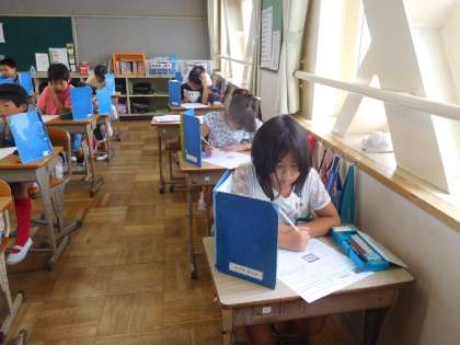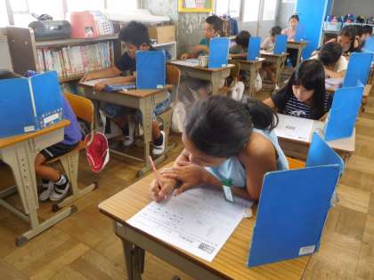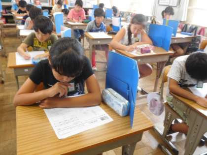 4年生の1学期までに学習したことを夏休み中に復習しました。その力を発揮するチャレンジテストをしました。