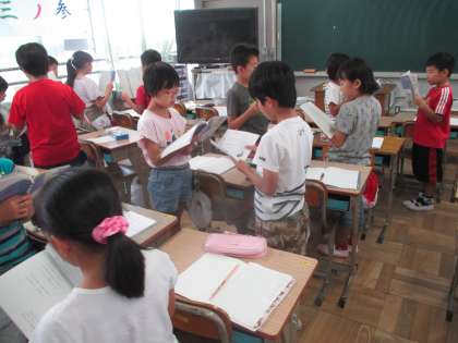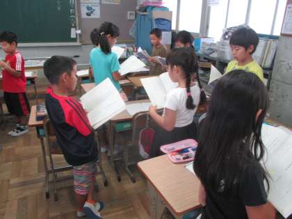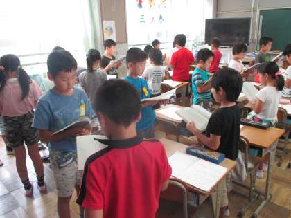 大きな声で「山のてっぺん」という詩を音読しました。山のてっぺんには果たして,何があるのか・・・みんなで出し合いました。