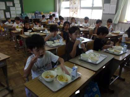2学期初めての給食が,待ち遠しかったようです。