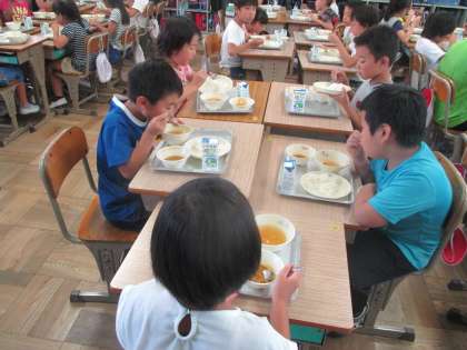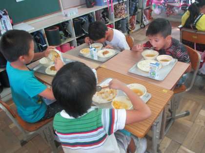 給食がスタートしました。2学期は完食を増やしましょう。