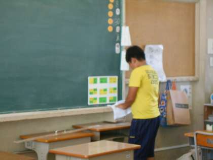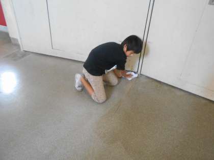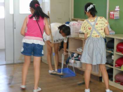 長い廊下もみんなで協力してテキパキ掃除しています。