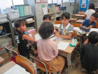 「伝えよう楽しい学校生活」の学習が始まりました。今日は班を作り,伝えたい行事について話し合いました。