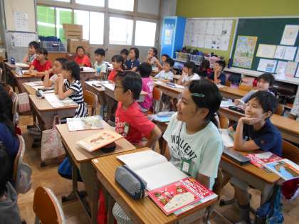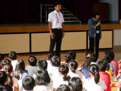今日から2週間,教育実習の先生が4年1組に来ることになりました。さっそく質問をしたり,先生に授業で教えてもらったり,掃除のしかたや教室の場所を先生に教えたりとたくさん関わっています。