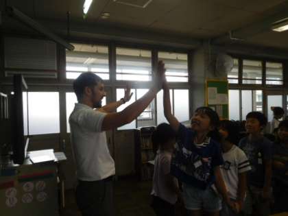 NSの先生のことについての「YOSOU GAME」をしました。正解した数だけハイタッチができました。