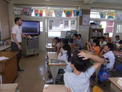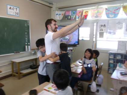 NSの先生による初めての授業でした。先生がすっかり好きになってしまい、大はしゃぎです。