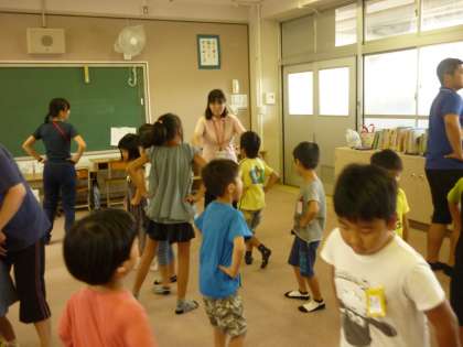 全員ダンス「U.S.A」を踊りました。初めての練習でしたが、音楽をよく聞いて体を動かすことができていました。曲を知っている人は、歌詞を口ずさみながらノリノリで踊っていました。