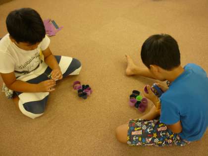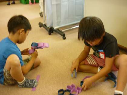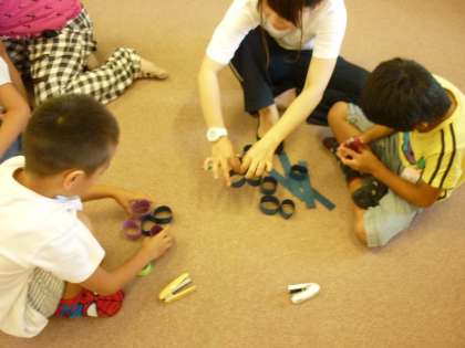 さまざまな色の画用紙を選んで、自分で組み合わせを考えながらぶどうの形を作っていきます。