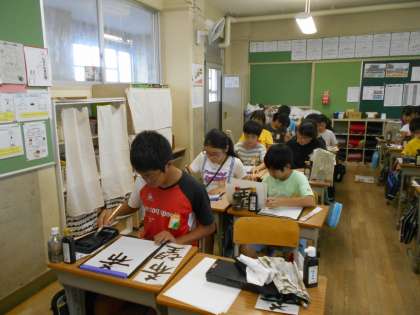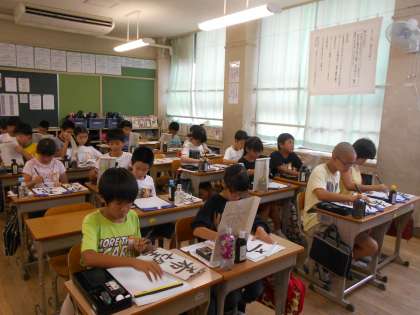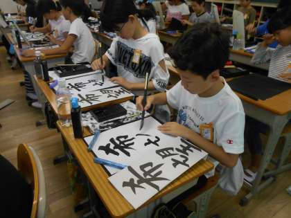 机の上を整頓し、正しい姿勢で、気持ちを集中させて書いています。