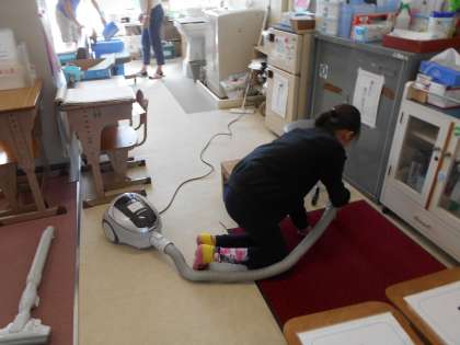 保健室の掃除も、もくもくと行っています。