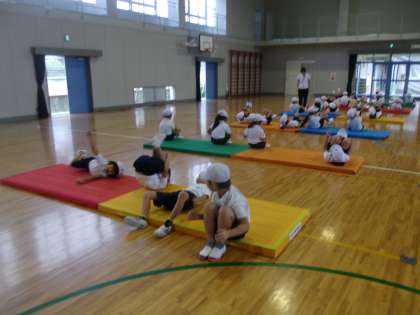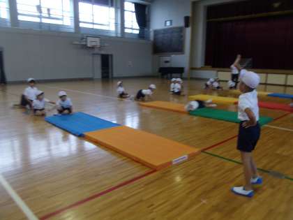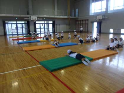 ルールを確認しながら,マットの上を転がったり,ゆりかご運動をしたりしました。
