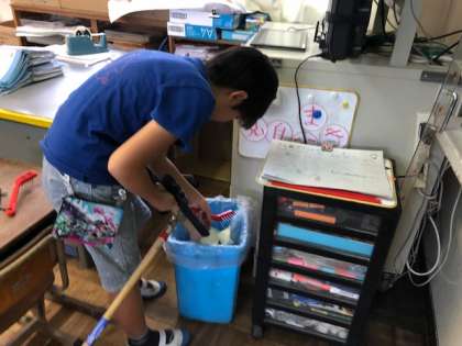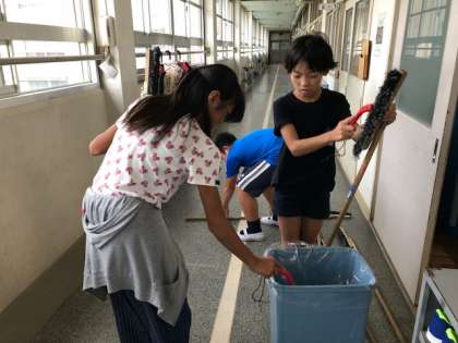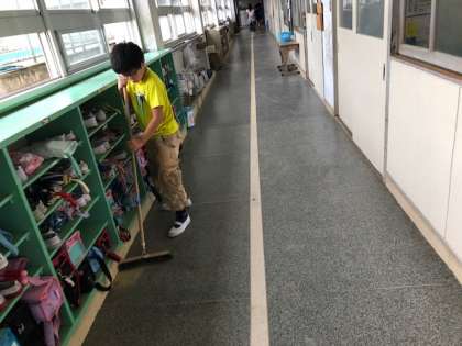 話し合いの後は,各クラスのほうきや廊下を掃除しに行きました。