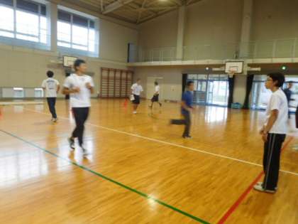 体育の実技研修を行いました。実際に体を動かすことで児童への声掛けのタイミングや戸惑いを知ることができました。