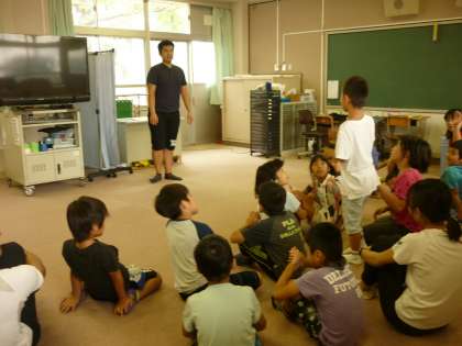 1時間の振り返りをしました。ダンスの難しかったところや楽しかったところ、感想を発表しました。アドバイスをしてくれる6年生もいました。