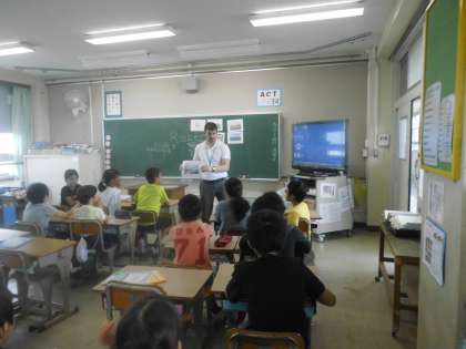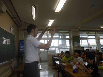 今日はNSの先生が来て外国語の授業をしました。先生に質問をしたり,ゲームをしたりしました。