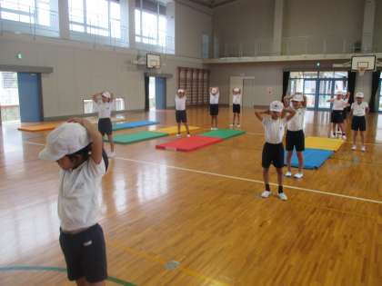 準備運動をしっかりしてから,今日はマット運動に取り組みました。
