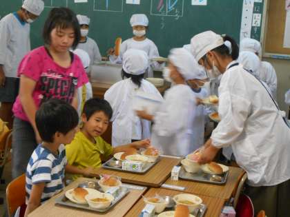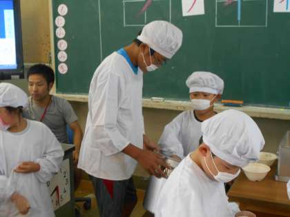 交流班ごとに日替わりで1年生のお手伝いにいっています。