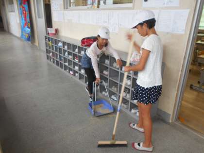 6時間目の体育で廊下が砂や土で汚れていました。