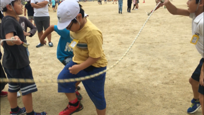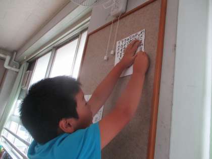 昨日,学級会で決まった長縄跳びのかけ声を教室に貼りました。早速,円陣を組み大声で叫んでから練習に臨みました。最初の目標は1分100回,頑張ろう!