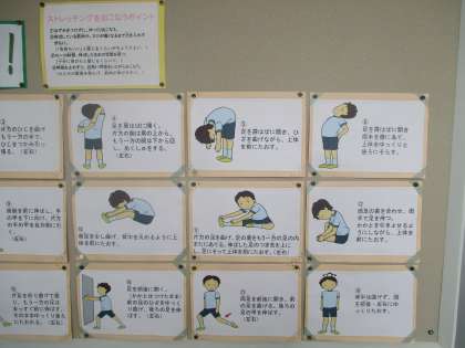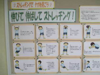 運動の前には準備運動で体の調子を整えて,運動後は疲労の回復をはかる整理運動をして,けがなく楽しみましょう。