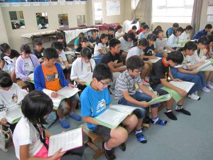 連合運動会で歌う曲を練習しています。