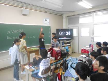 お笑い・クイズ係りが劇をしました。どんどんクラスに笑いを届けてほしいです。