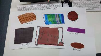 今日のなかよしパソコンは,お菓子の絵を描きました。ペロペロキャンディーやチョコレートなど,色々なお菓子を描いていました。この絵は,10月のなかよし学級前掲示で使う予定です。