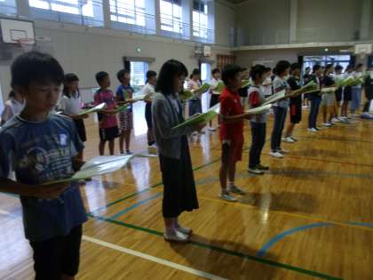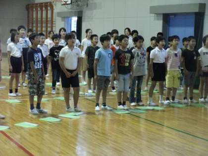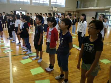 学年で歌の練習をしました。130人の歌声を合わせていきます。