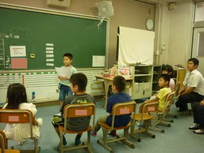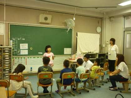 なかよし参観では、朝の会の様子をお家の人たちに見てもらいました。日直さんの進行で、日付や予定を確認したり、スピーチをしたりしました。