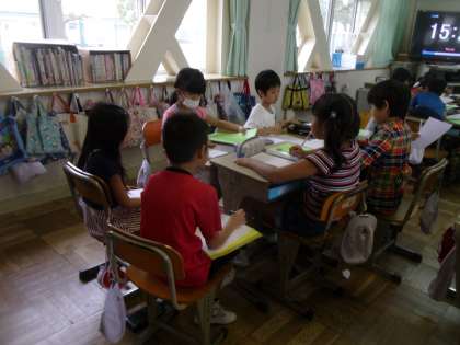 校区たんけんに行って学習したことを,グループのみんなで振り返りました。