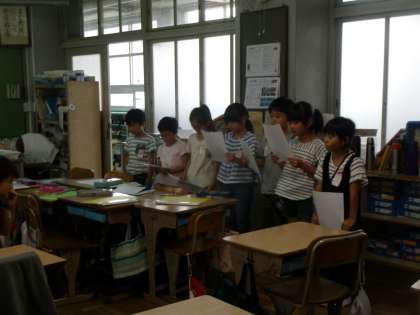 たんけん報告会で,学習したことを友だちに伝える練習もしました。