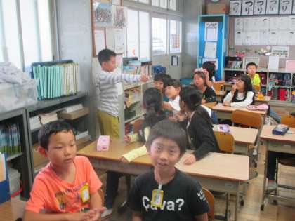 理科の復習をした後,友だちが家で脱皮したカマキリの皮を持ってきてくれました。みんなで回して,観察しました。