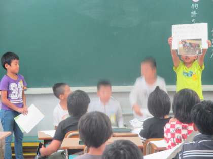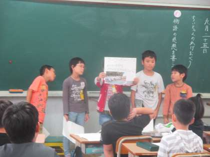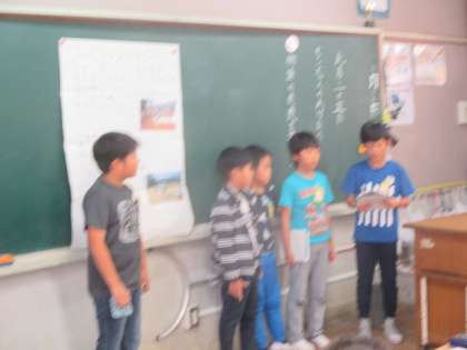 「伝えよう楽しい学校生活」のまとめです。それぞれわかりやすい言葉を使い,発表をしました。代表グループは1年生に発表,今日の撮影した映像をビデオにして渡します。