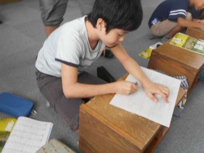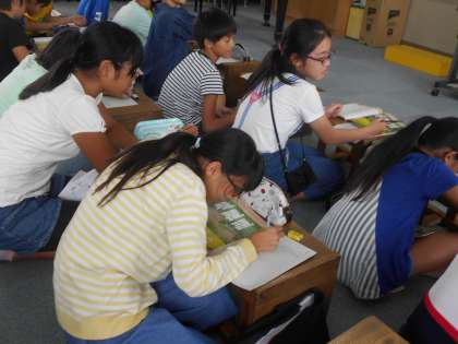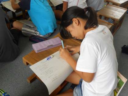 音楽では、「ふるさと」を聴きながら、歌詞の意味を考えたり、自分の好きな歌詞の部分について考えを書いたりしました。