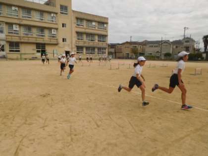 いい天気と気温で活動しやすい日でした。5分間走は体育館と運動場での走る感覚が違い,記録が伸びた児童が増えました。