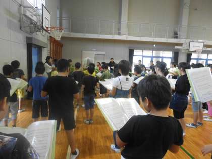 今日は学年合同で練習をしました。笑顔を意識して歌ったり,ソプラノとアルトに分かれて練習したりしました。