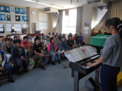 「ふるさと」の合唱の練習をしています。