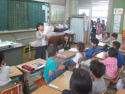 1年生に3年生の行事を伝えに行きました。静かに聞いてくれてありがとう。