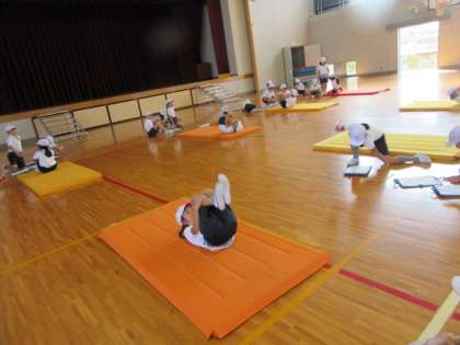 マットでは,いろいろな技に挑戦しました!
