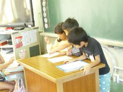 学習係さんが前で答え合わせをしてくれています。積極的にがんばってくれました。