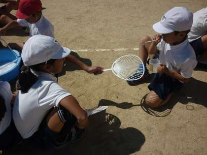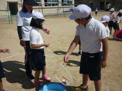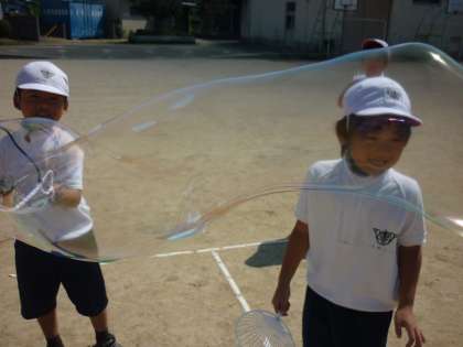 とても大きいシャボン玉ができて思わず笑顔になりました。