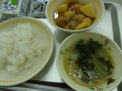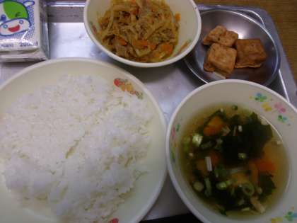 みそ汁・豚肉と野菜の生姜煮・小魚の佃煮