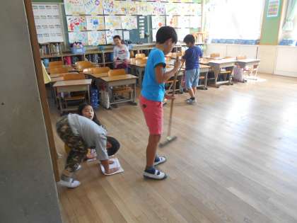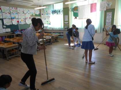 1年生もずいぶん掃除が上手になってきました。