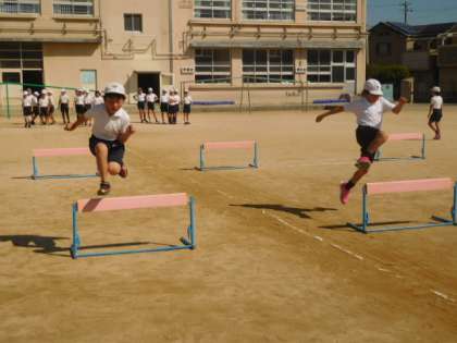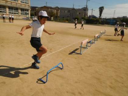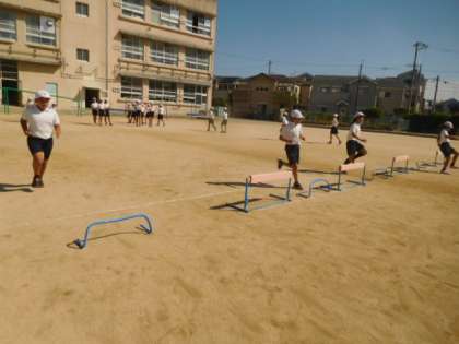 ハードル走でタイムを計りました。50m走のタイムと比べました。