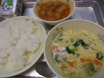 ちんげん菜の卵スープ・肉団子のケチャップ煮